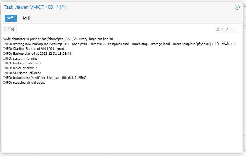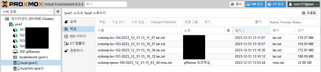 | Proxmox 백업 파일 다운로드 받기 (0) | 2023.12.31 |
