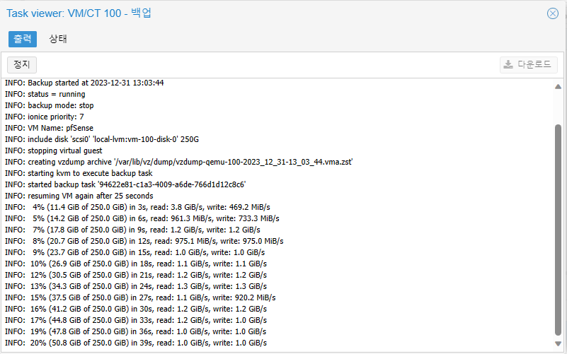| Proxmox 백업 파일 다운로드 받기 (0) | 2023.12.31 |